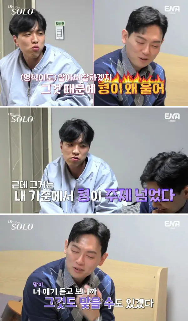 또 영수는 영식이 걱정 됐던 건지 눈물까지 흘리며 조언을 아끼지 않습니다.