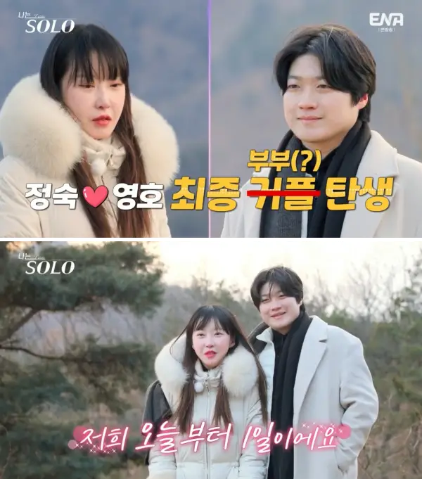 정숙도 영호를 선택하고, 그렇게 최종 커플이 되는 나는솔로 20기 핫 했던 정숙과 영호.