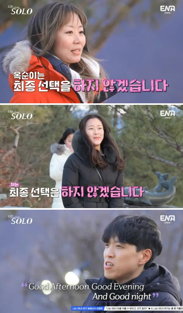 뒤이어 상철은 처음부터 줄 곧 마음을 표현했던 영자에게 향하고, 영자도 최종 선택 전 조금 울컥한 모습을 보이며 상철을 선택합니다.