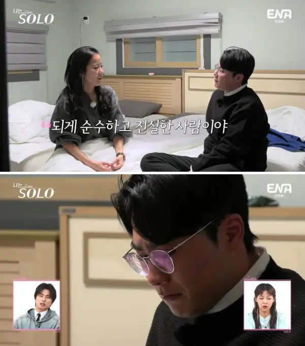 마지막 날이 되어서야 영숙의 속마음을 듣게 되는 영철은 눈물을 보입니다.