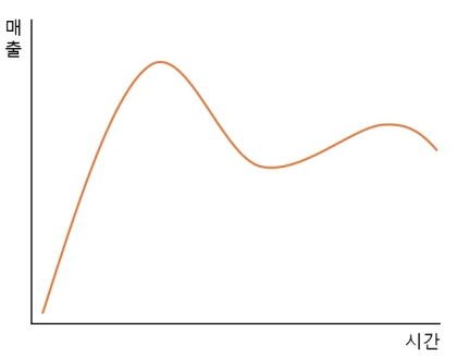 일시적 제품의 수명주기 형태는 위 그래프와 같습니다.