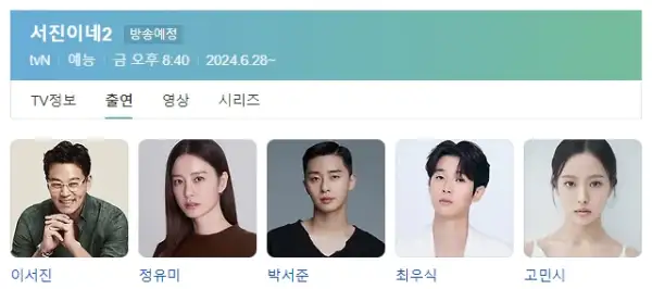 - 방송 시간 : 24년 6월 28일 ~ (매주 금요일 저녁 8 : 40)