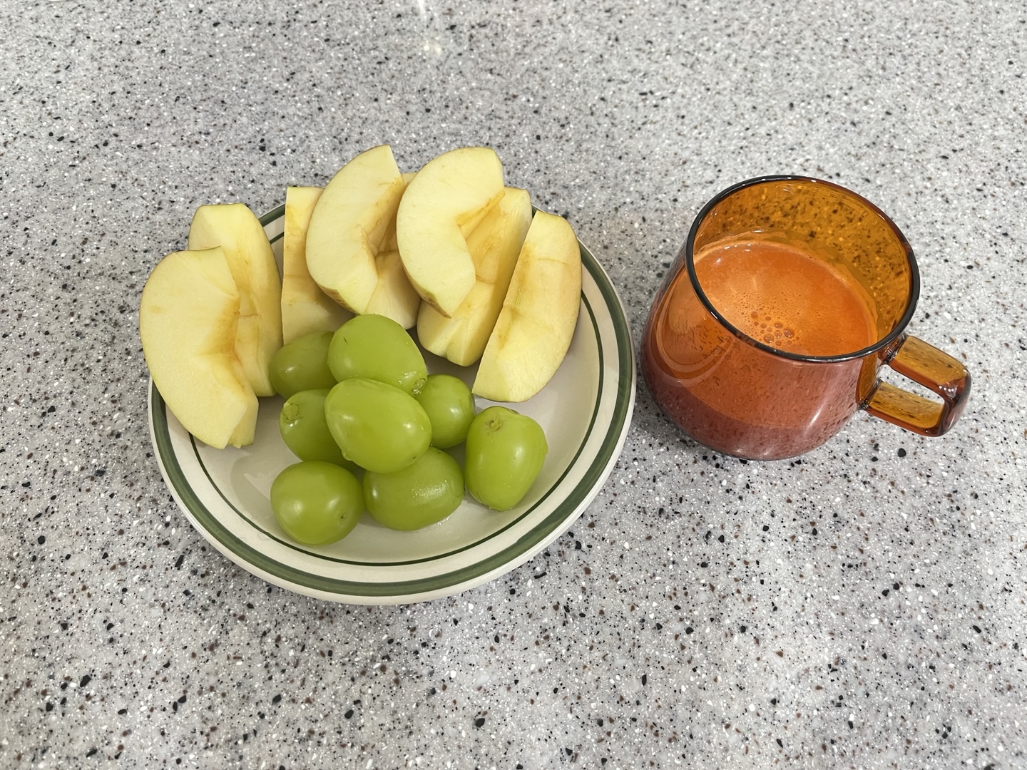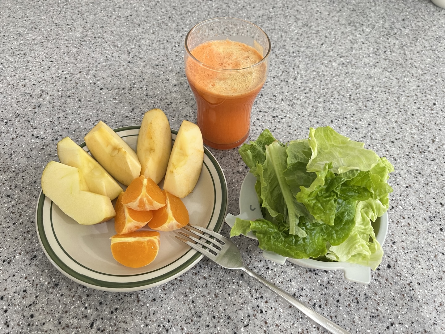 과일 두어 개와 당근주스 조합도 괜찮고 저때는 시간이 많았었나 보다. 쌈채소까지 씻어서 먹었네.. 지금은 저렇게 먹을 시간이 없어 못하고 있지만 시간이 여유롭다면 추천.