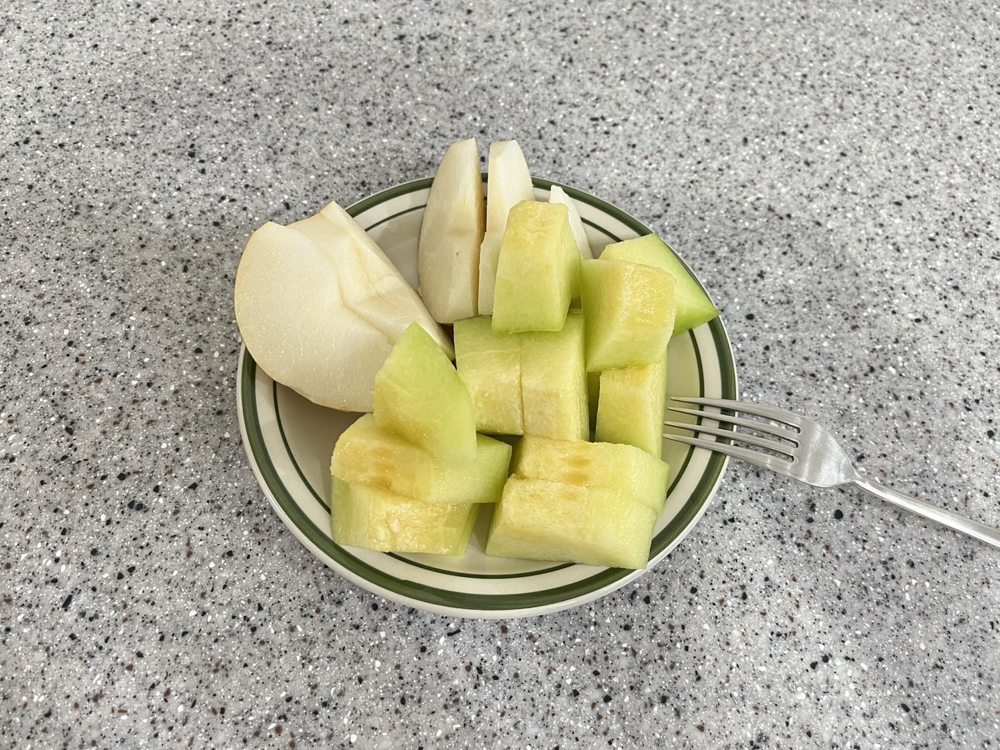 이젠 아침에 이렇게 먹는 게 습관이 돼서 감자든 뭐든 후딱 준비하지만 너무 바쁠 때는 그냥 냉장고에 있는 과일만 대충 꺼내서 잘라먹고 간다.