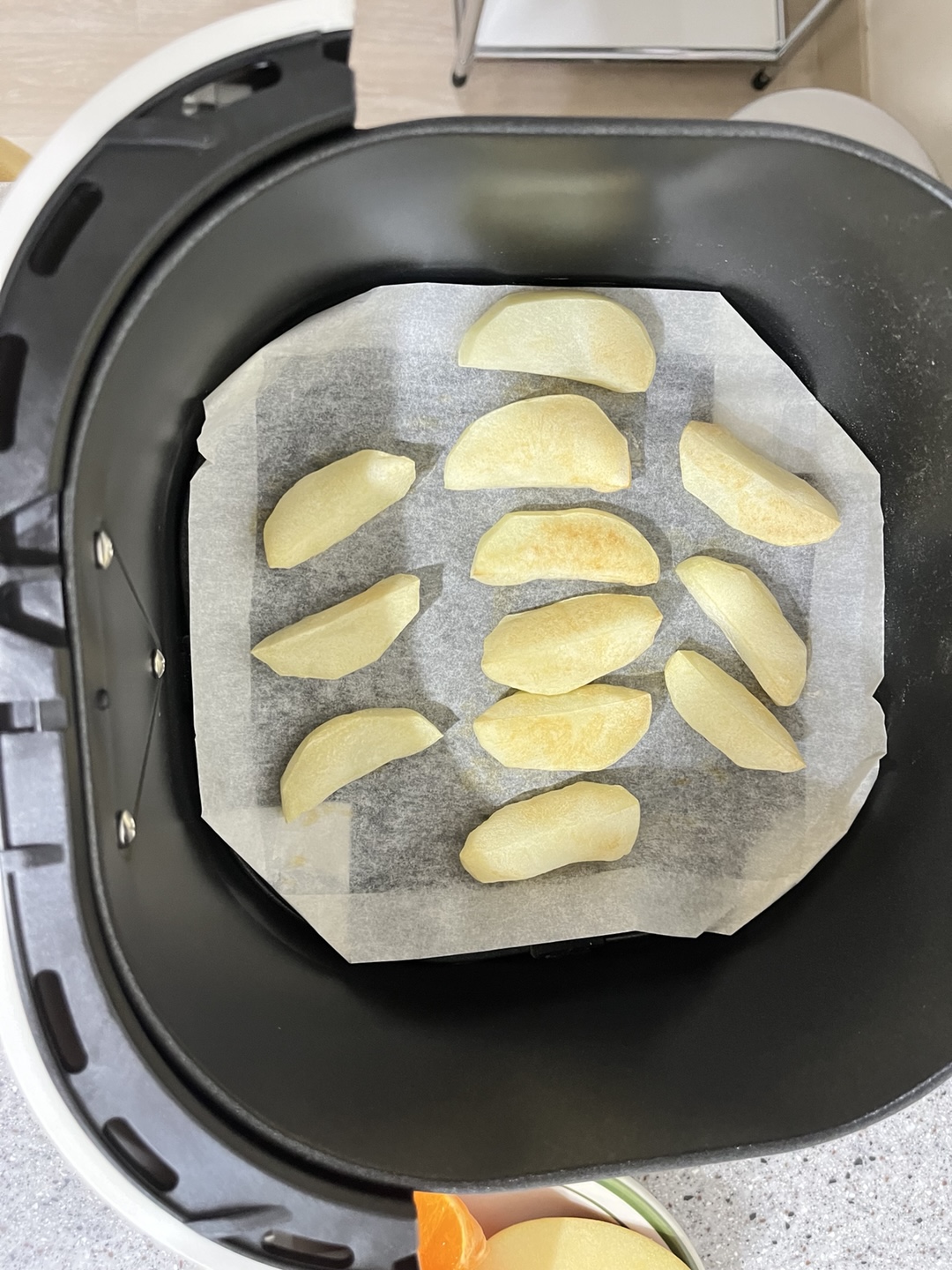 통으로 돌려도 되지만 나는 껍질을 벗겨내고 저렇게 잘라서 170도 14분, 뒤집에서 170도 14분 돌려준다.
