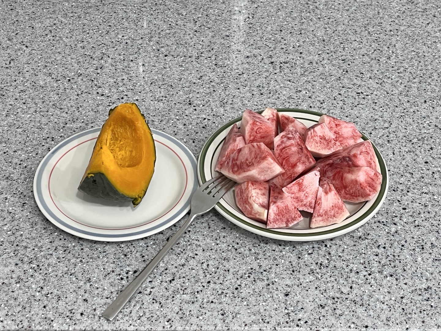 단호박을 한 소꿉 쪄서 냉장고에 넣어두고 아침마다 꺼내서 살짝 데워서 과일 몇 가지 씻어 같이 먹었었다. 나름 배도 든든하고 좋다.