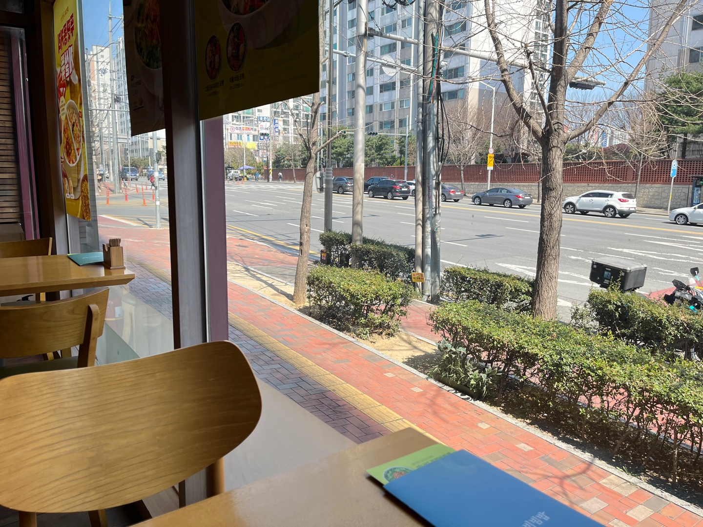 식사가 나오기 전까지 멍~하니 창밖만 보고 있었다. 너무 좋아... 아무런 에너지 들지 않고 지나가는 사람 구경, 차 구경, 버스 구경 구경 구경.